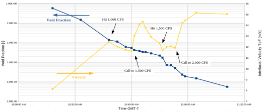 - Flow velocity range 0.25m/s – 35+m/s, limited only by probe surviving debris strikes